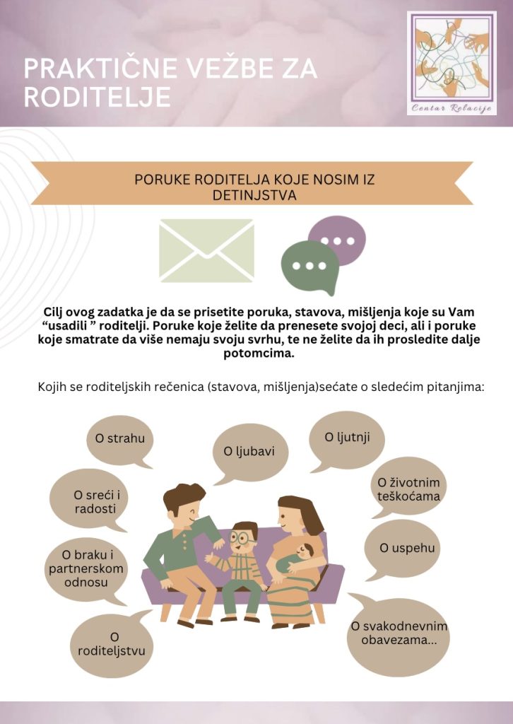 Iz naše želje da podržimo roditelje je i nastao naš E-book ,,Osnažen roditelj, zadovoljno dete“. E-book je u prodaji od 10. 12. 2023. i do 31. 12. 2023. možete ga poručiti po ceni od 5.000 din. i dobićete na poklon 3 audio vežbe (2 za roditelje i jednu za decu). Od 01. 01. 2024. cena je 7.000,00 din.
